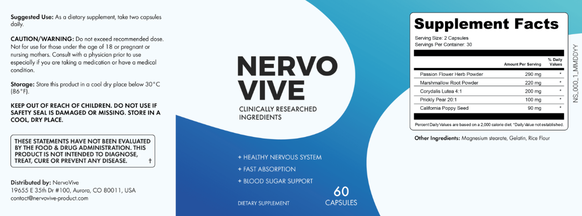 A fórmula combina ingredientes naturais cuidadosamente selecionados, incluindo flor-de-maracujá, raiz de alteia, corydalis, cacto-nopal e semente de papoula-da-califórnia. Essa poderosa mistura atua para acalmar os nervos, reduzir inflamações, equilibrar o açúcar no sangue e apoiar a função nervosa saudável.